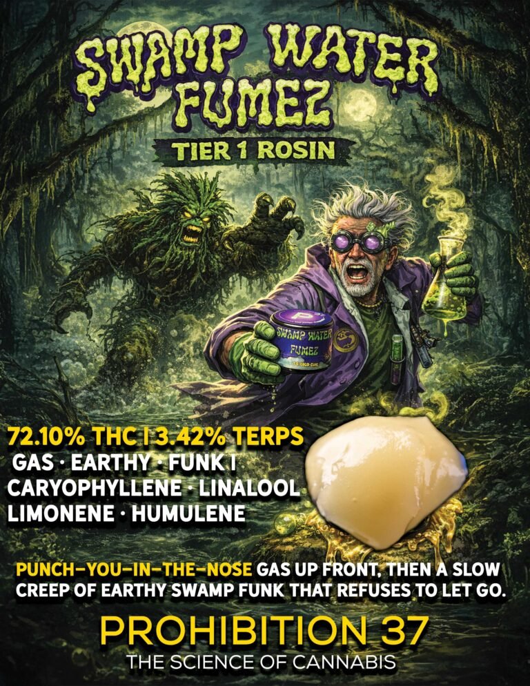 Prohibition 37 is unveiling a Double Tier 1 Solventless Rosin Drop, pairing two radically different terpene expressions pressed under the same uncompromising lab standards. One leans bright and tropical. The other lives deep in the gas-soaked undergrowth.